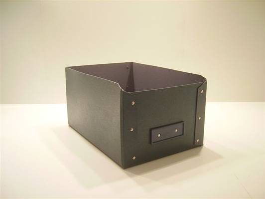 Die Karteikästen sind in der Standardfarbe graublau erhältlich.